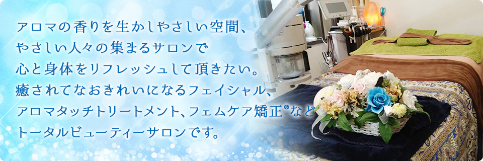ひとりひとりのお客様を大切にし、アロマの香りを活かし、やさしい空間・やさしい人々の集まるサロンで心と身体をリフレッシュしていただきたい。